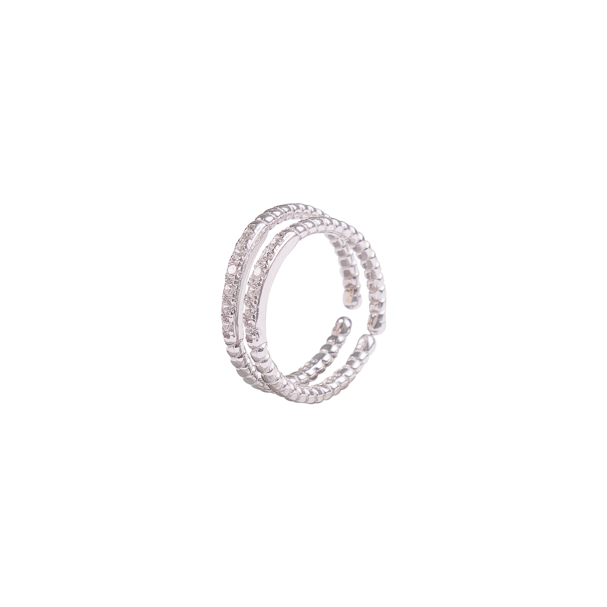 | This adjustable toe ring features a dual-band design, one a simple polished band and the other a pav̩-set band of shimmering cubic zirconia stones. |
