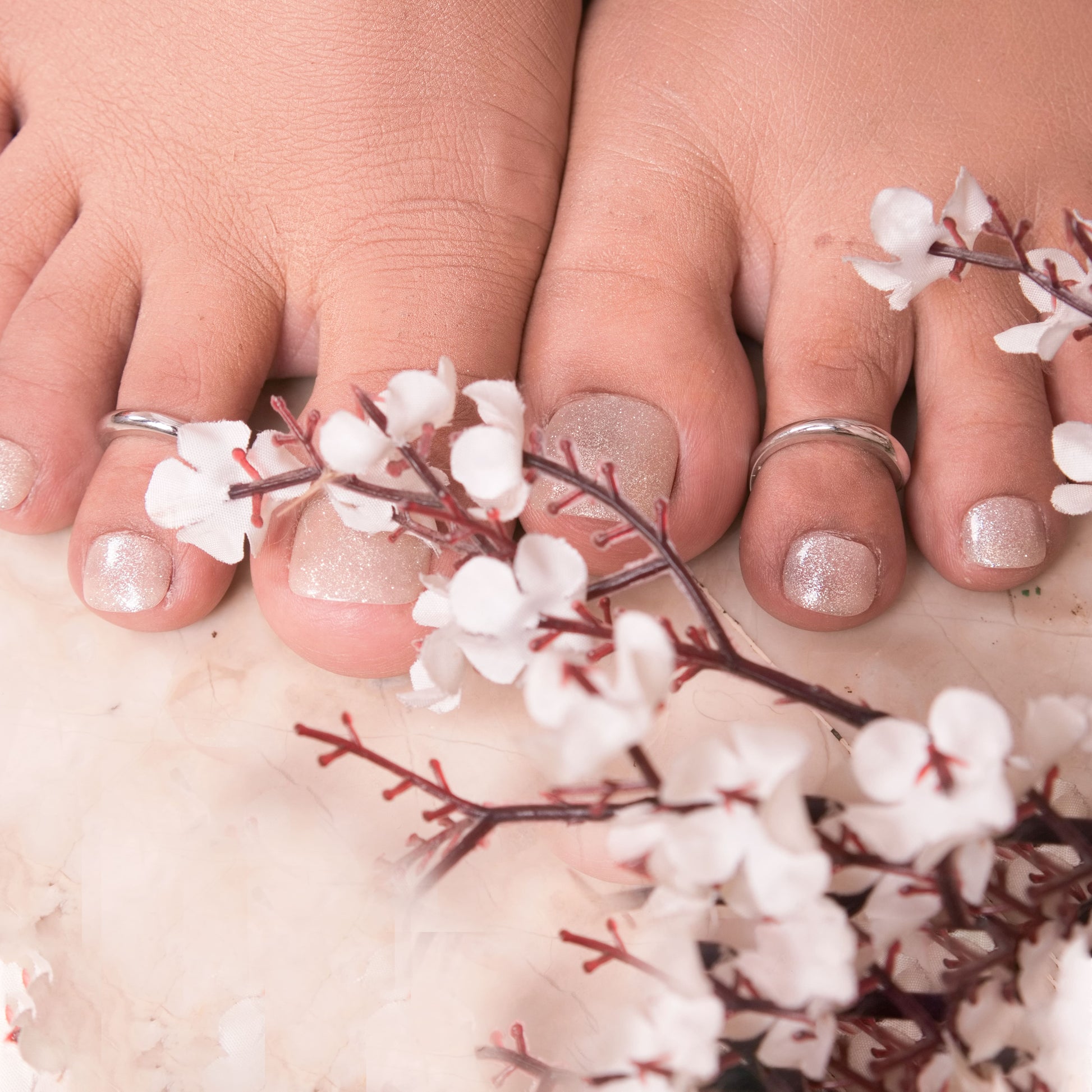 | These adjustable toe rings are crafted from a sterling silver with a sleek, minimalist band design, making them a timeless and versatile accessory for any occasion. |