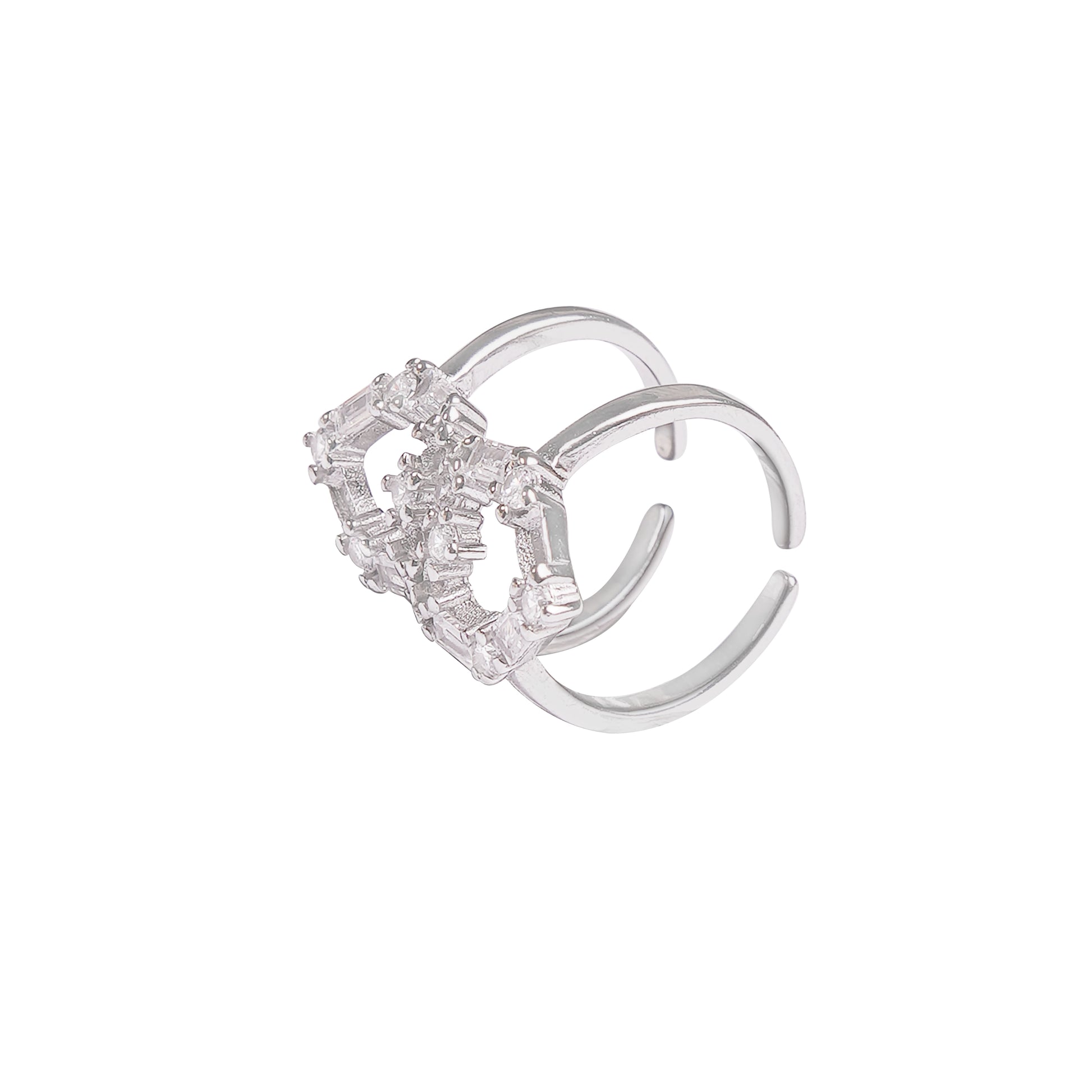| These adjustable toe rings are crafted from sterling silver and feature a unique interlocking design of two open hearts, each encrusted with dazzling cubic zirconia. |