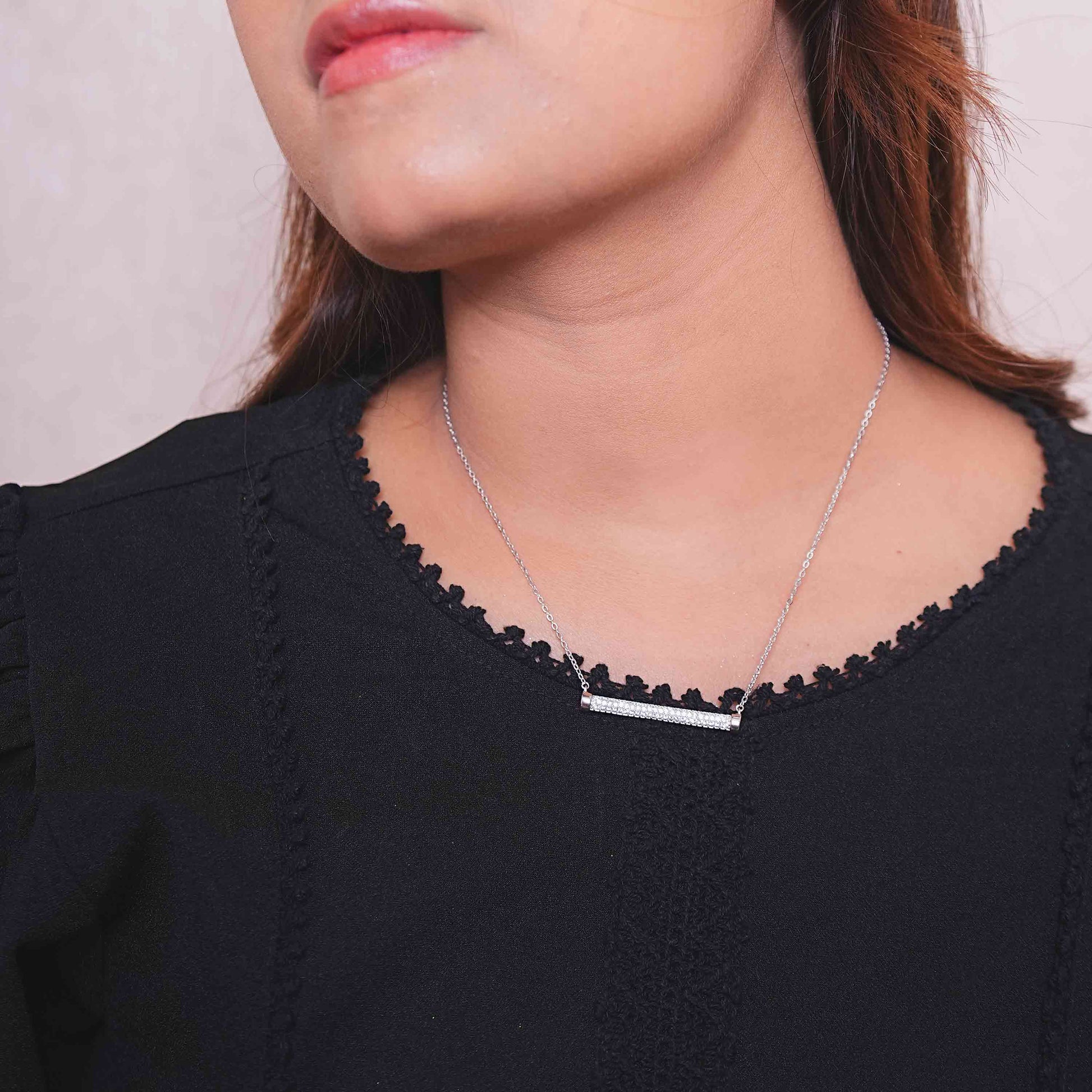 A sleek and modern sterling silver bar pendant, fully encrusted with brilliant cubic zirconia, offering a touch of sophisticated sparkle for everyday elegance.
