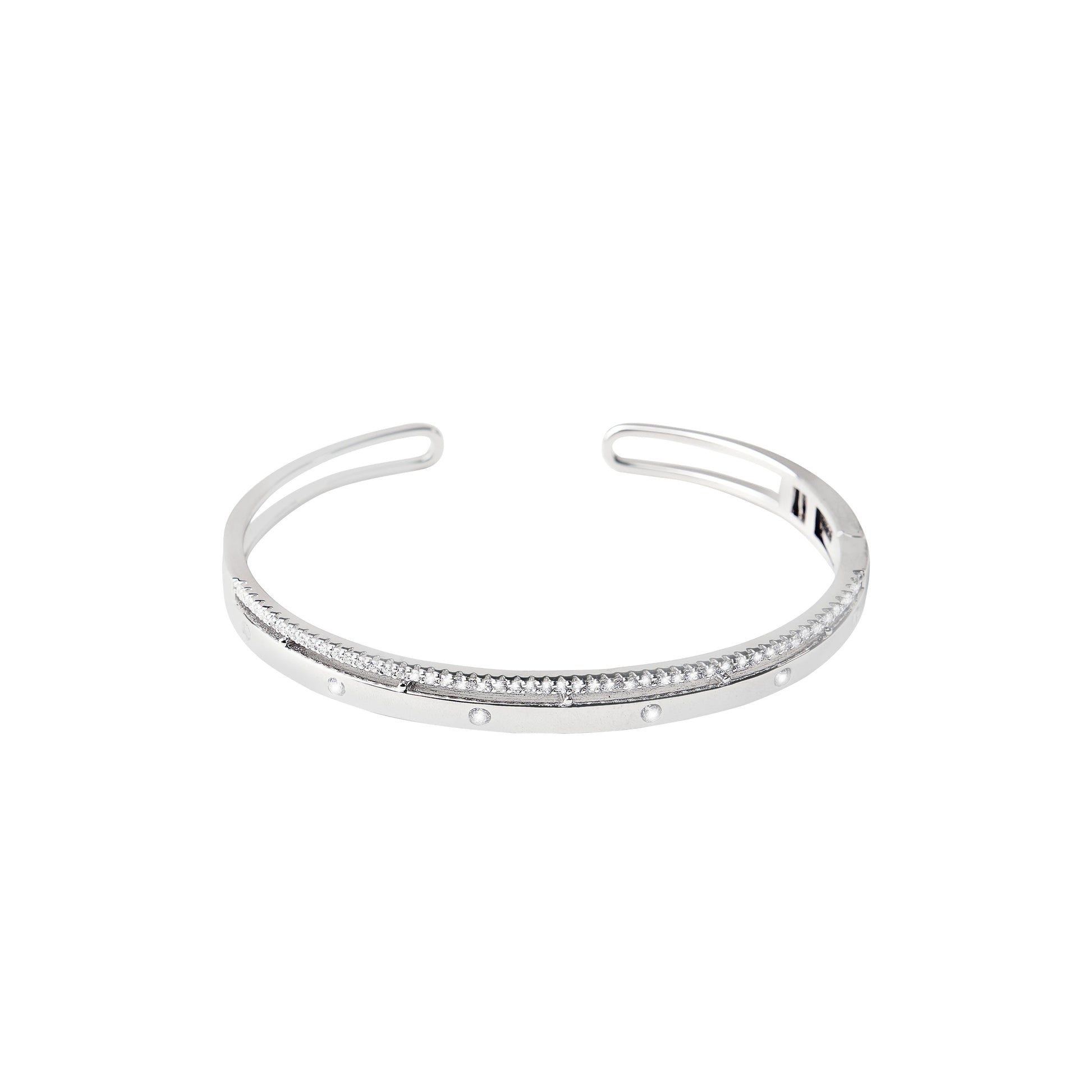 This sleek sterling silver cuff bracelet features a dual-row design, with one line of brilliant pave-set, creating a captivating contrast.