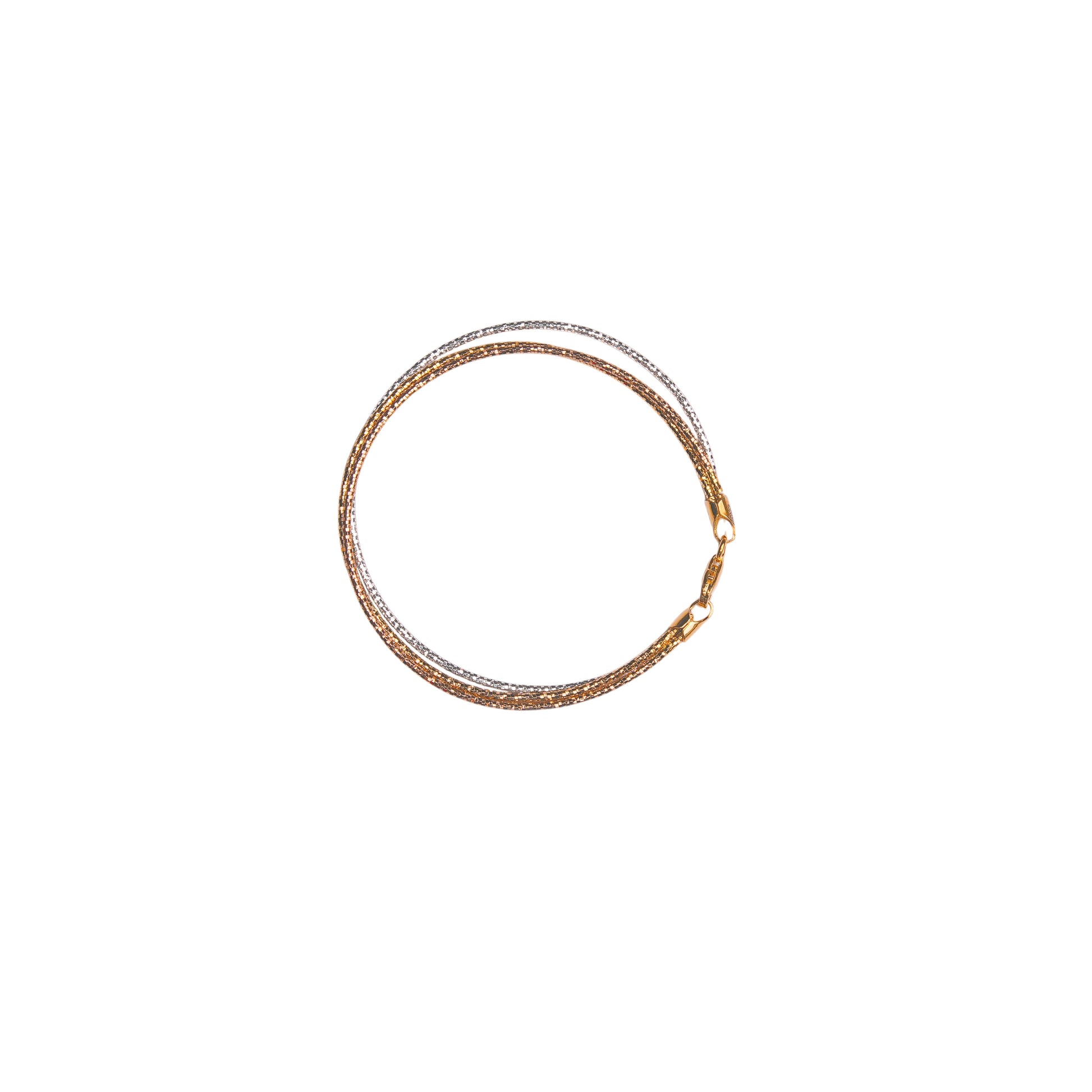 This striking payal features two intertwined, finely woven chains in contrasting gold and silver tones. Its elegant braided design offers a modern, luxurious feel with every step. |
